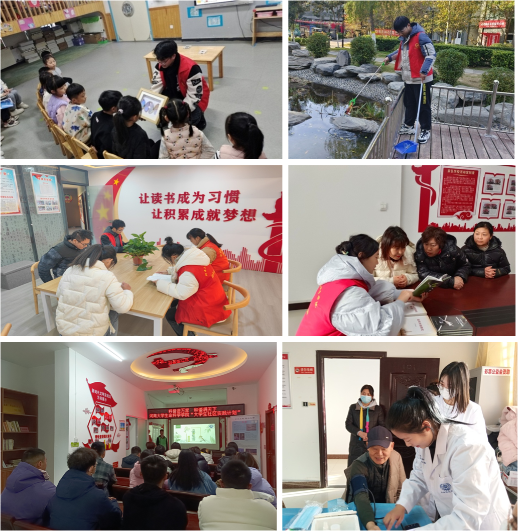 此次社区实践活动包括社区治理、科普调查、文体活动、医疗服务和健康认知五个方面的内容。在社区治理活动中,志愿者通过捡拾垃圾并进行垃圾分类,使社区焕然一新,提高了团队协作能力和社会责任感。在科普调查活动中,聚焦黄河生态现状,通过张贴海报、有奖问答等贴近生活的方式宣传沿黄河鸟类、鱼类等生态知识,使社区居民了解生态保护的重要性,提升了环保意识。为社区居民提供实用的测血压、血型等公益健康服务,科普用眼知识、提供眼镜清洗,进一步指导居民规划生活方式,加强身体锻炼。同时,深入社区宣传党的重要思想,开展“四史”学习和理论宣讲,感悟新时代的伟大成就和伟大变革,大家认为现在的美好生活离不开党的领导,离不开祖国的繁荣昌盛,更好的明天需要每个人的付出和努力。