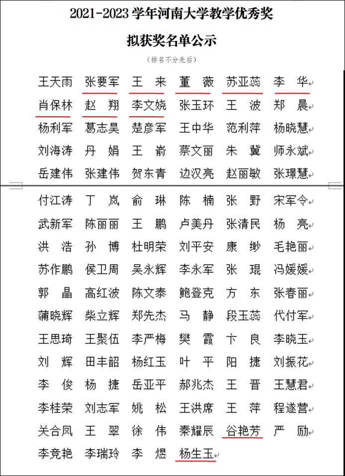 2021-2023学年欧博abg官方网站教学优秀奖拟获奖名单公示-欧博abg官方网站教务处https://jwc.henu.edu.cn/info/2145/8370.htm