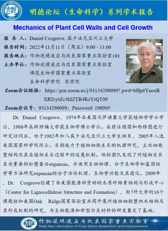 Daniel Cosgrove:Mechanics of Plant Cell Walls and Cell Growth