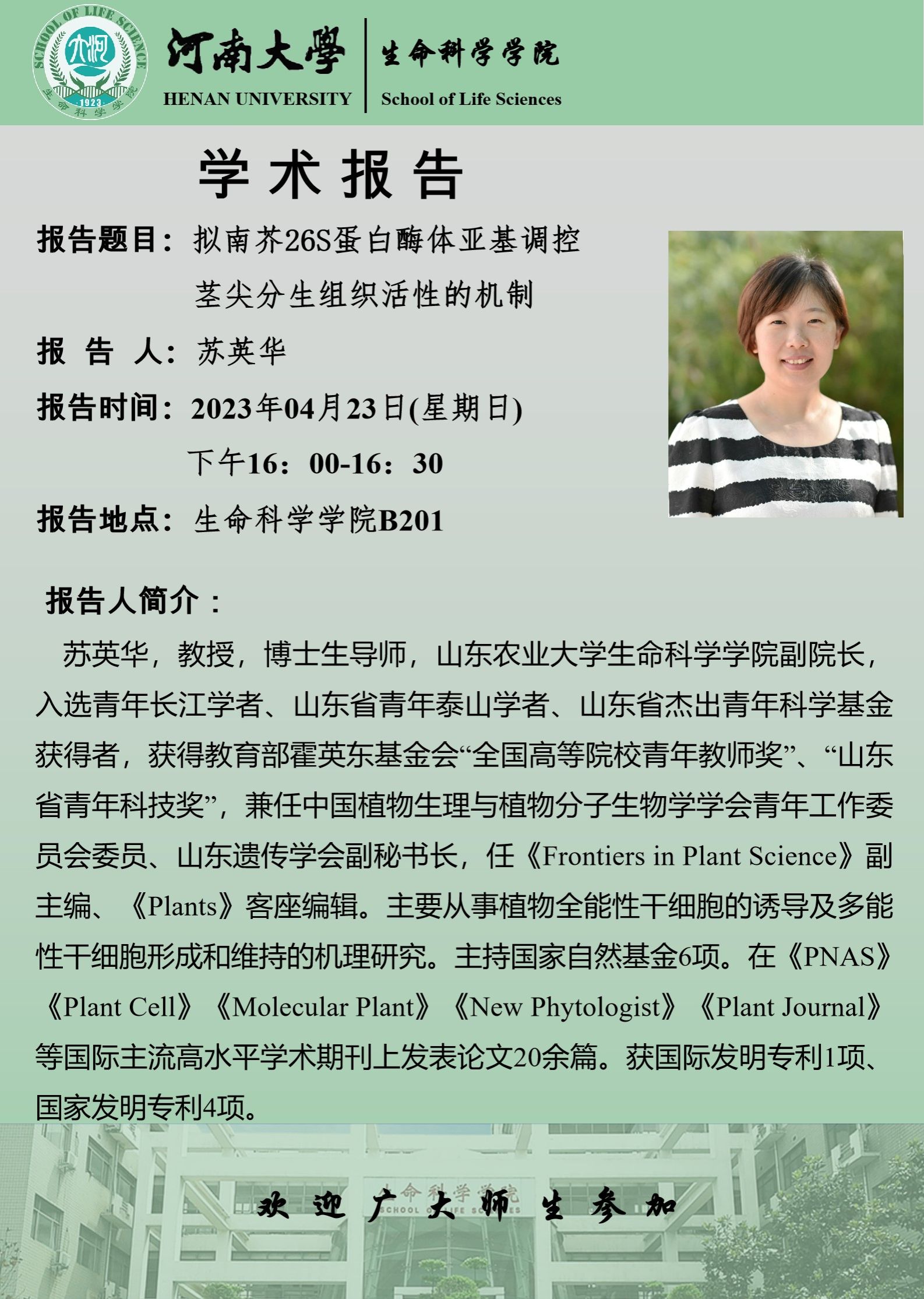 苏英华:拟南芥26S蛋白酶体亚基调控茎尖分生组织活性的机制