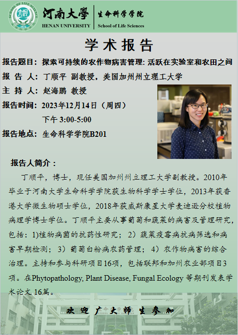 丁顺平:探索可持续的农作物病害管理:活跃在实验室和农田之间